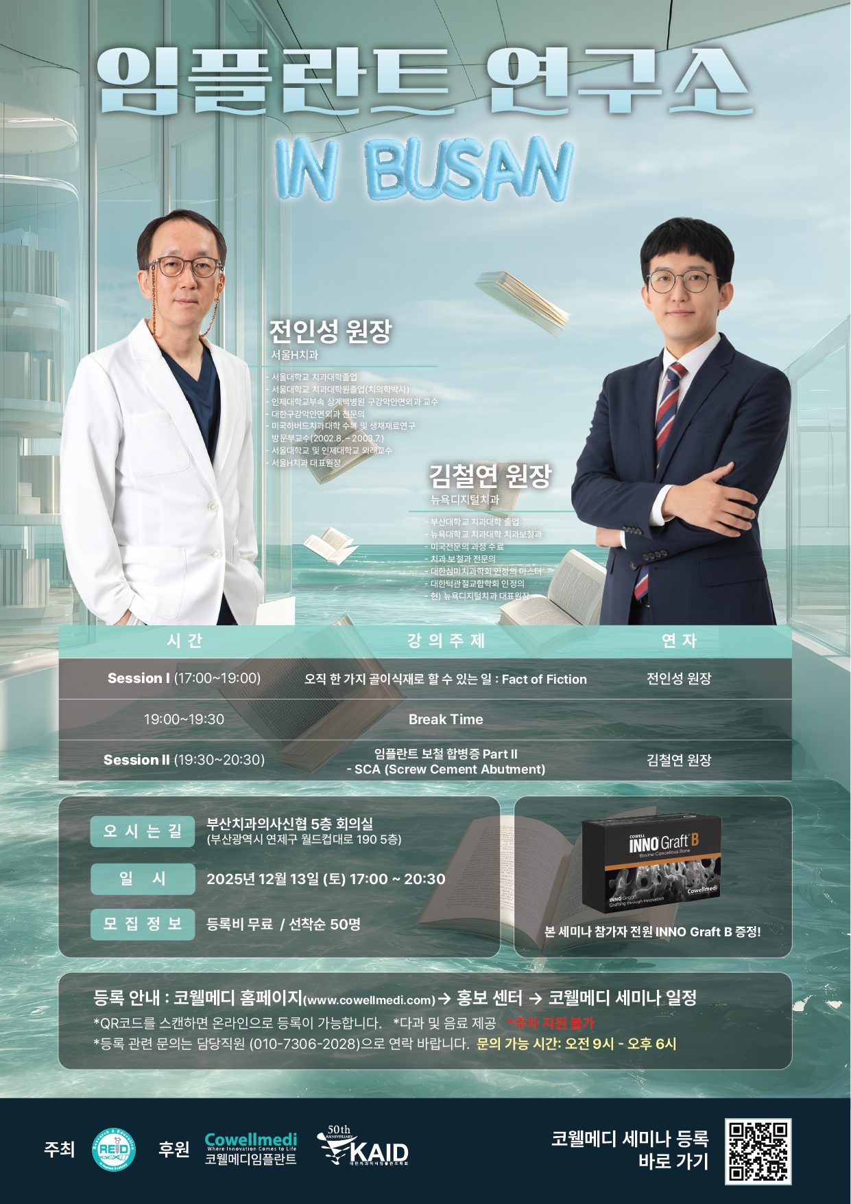 *신청 : 코웰메디 홈페이지 → 홍보센터 → 코웰메디 세미나 일정