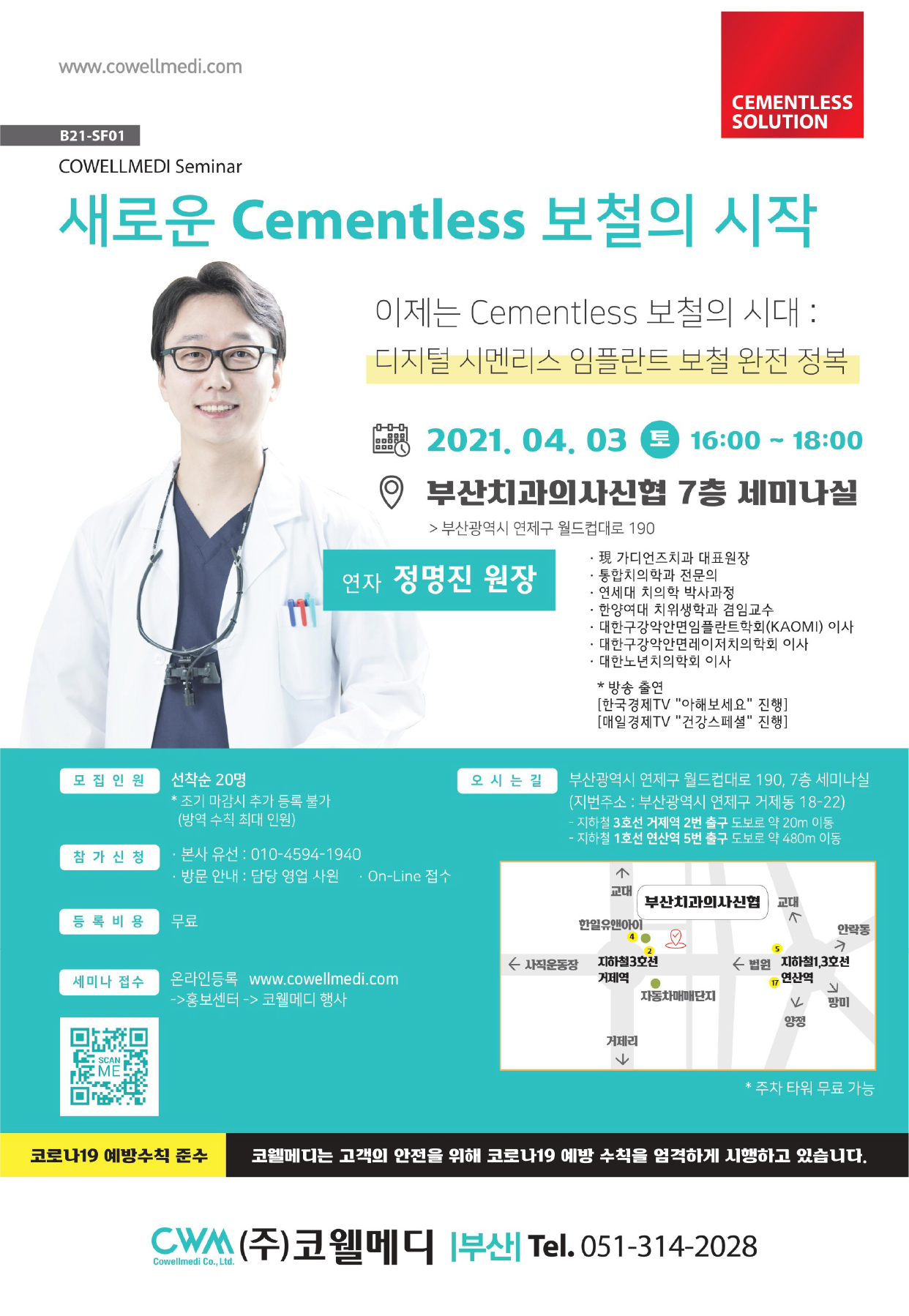 새로운 Cementless 보철의 시작 일시: 2021-04-03 ~ 2021-04-10 장소: 부산치과의사신협 7층 세미나실 이전글 REID Global 국내 연수회 다음글 Management of maxillary sinus atrophy 목록