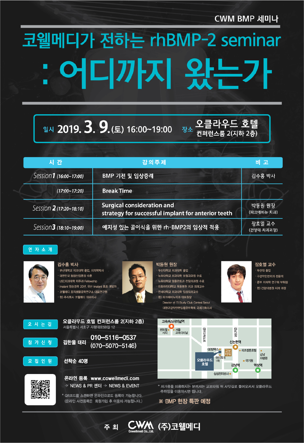 코웰메디가 전하는 rhBMP-2 seminar : 어디까지 왔는가 일시: 2019-03-09 <16:00 ~ 19:00> 장소: 오클라우드 호텔 이전글 COWELL® International Conference 2019 다음글 IDS 2019 목록