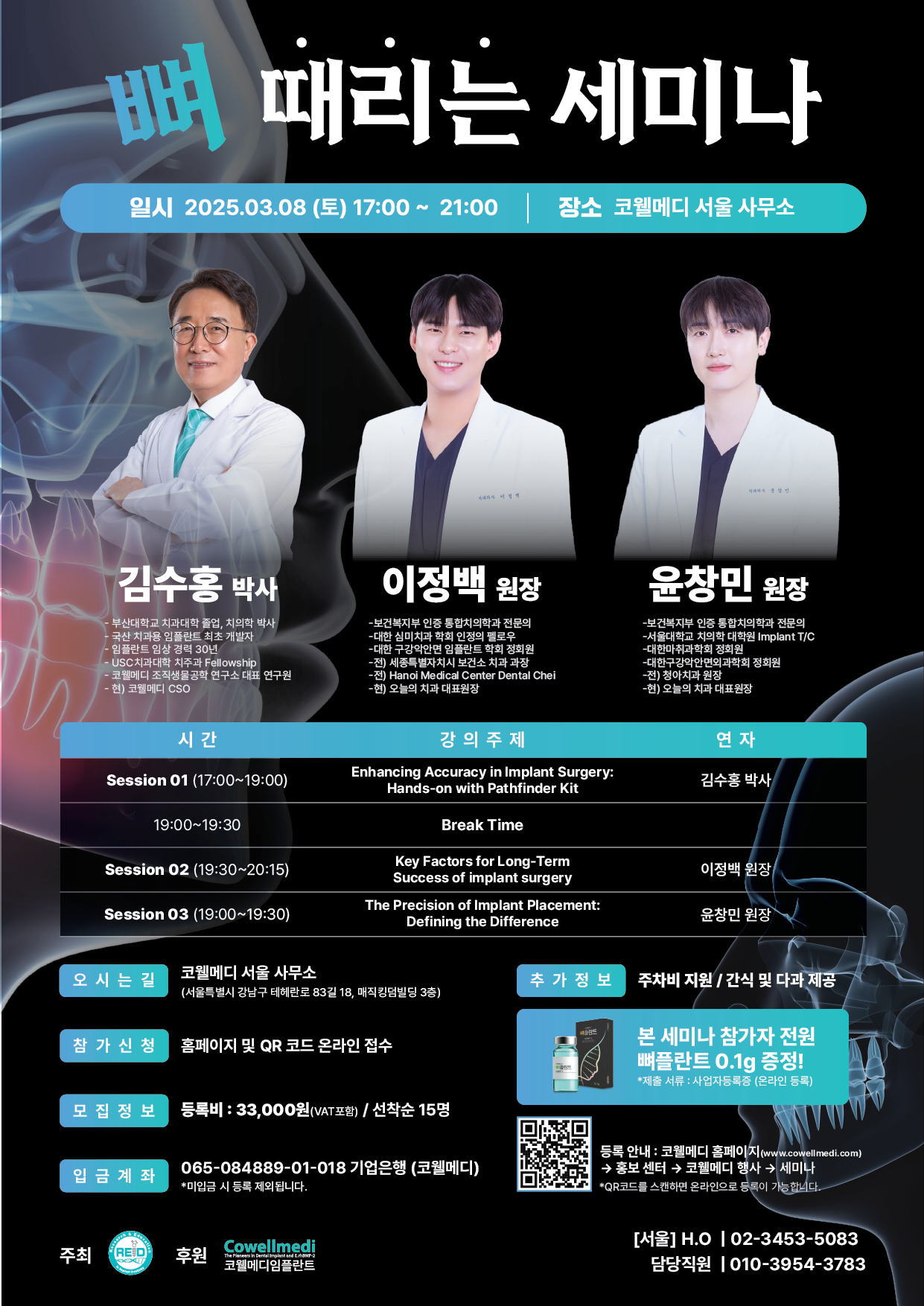 - Session 02 (19:30 ~ 20:15) : Key Factors for Long-Term Success of Implant Surgery